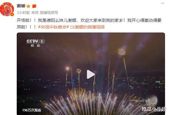 节目开始,谢娜在社交平台表达她的激动心情:开场啦。我是德阳幺妹儿谢娜,欢迎大家来到我的家乡!我开心得激动得要哭啦。