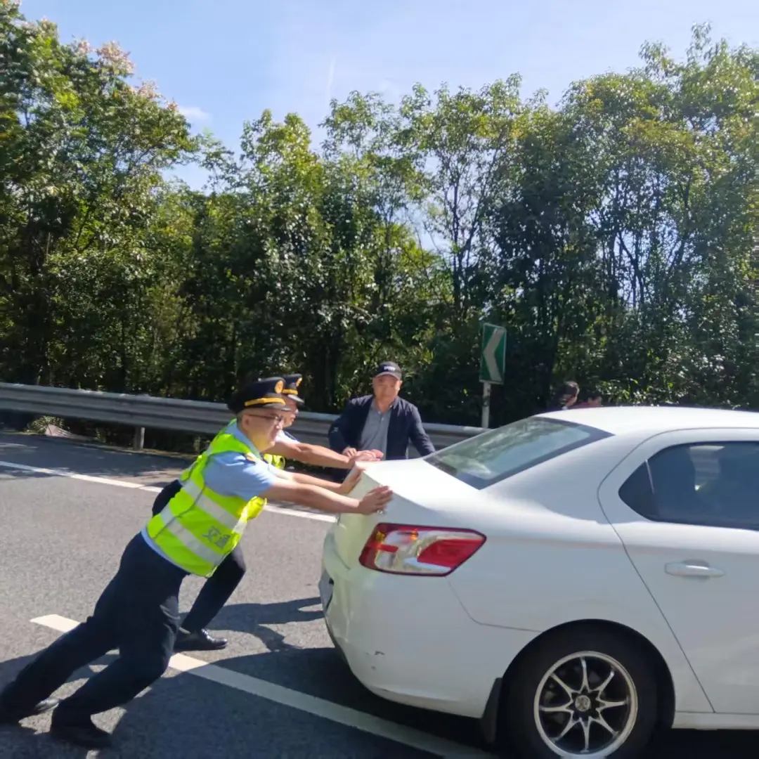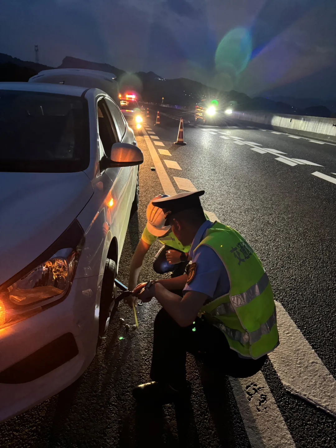 陆浩和同事立即分工行动,同事在后方设置警示标志,提醒后方车辆减速慢行;陆浩化身“修理工”,从执法车中取出工具,成功帮驾驶员更换备胎。
