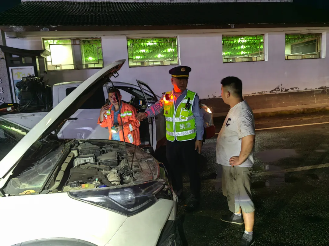 七大队唐朝懿帮助司乘人员排查车辆故障