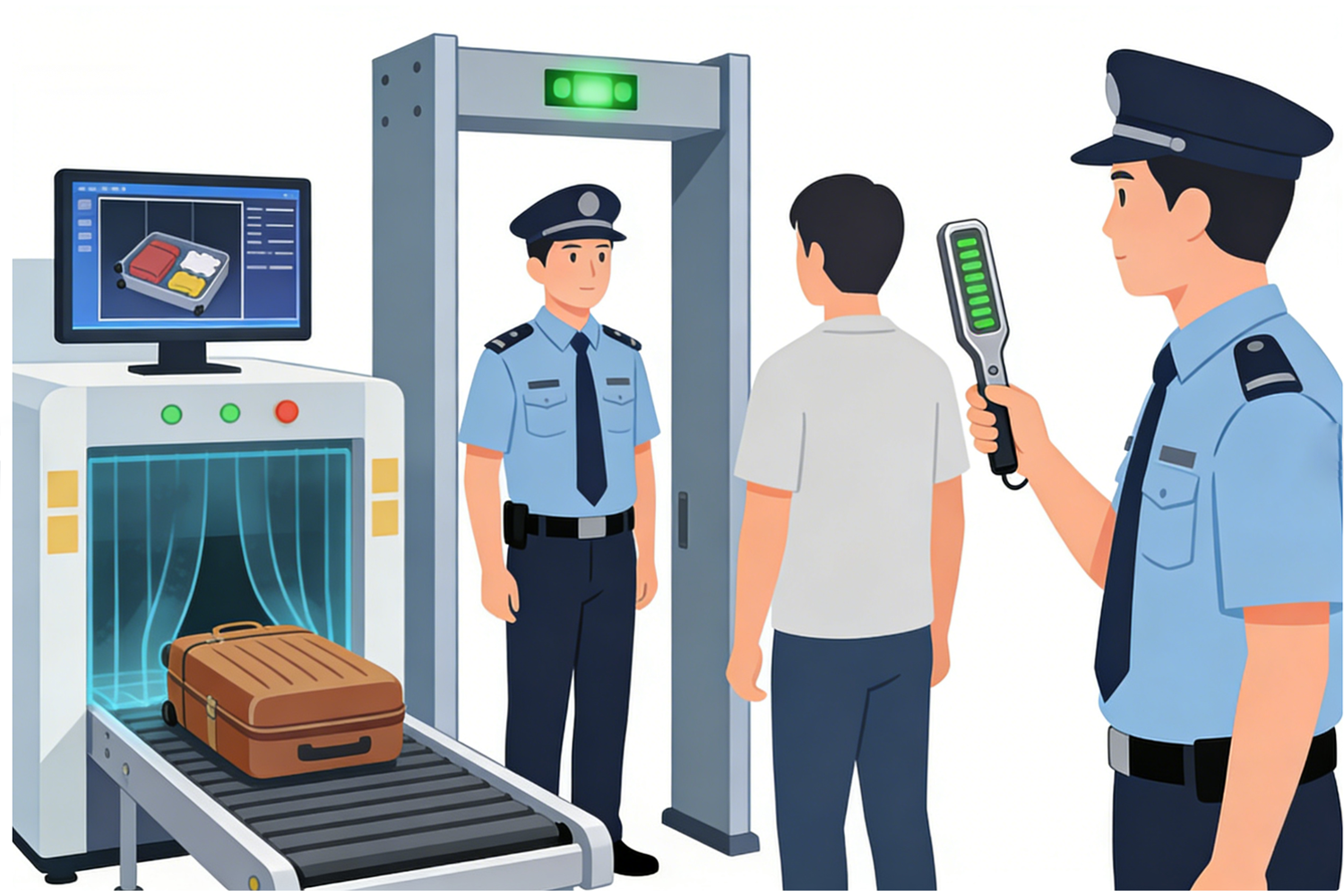 安检辐射莫担忧,科学认识解烦忧。剂量极微影响无,日常通过很安全。