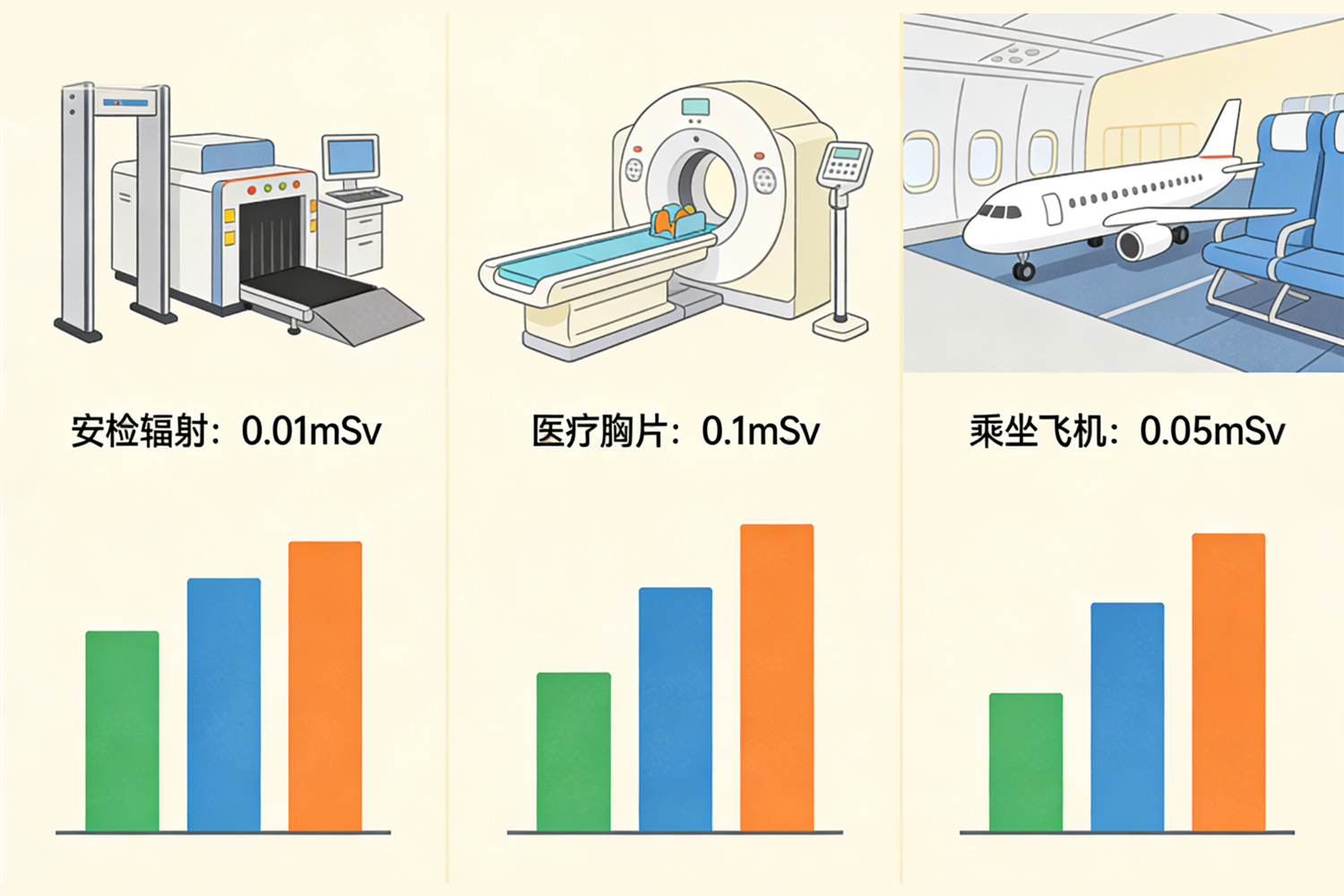 2、辐射剂量是关键。谈危害必论剂量。一次行李X光安检的辐射量,远低于一次医疗X光胸片,更不足乘坐两小时飞机所受宇宙辐射的十分之一。其微乎其微的剂量,在人体强大自我修复能力面前,不会造成可观测的健康损害。