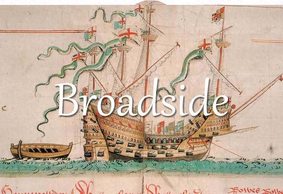从拼写上来看,不难发现 broadside 就是由常见单词 broad (宽的、宽阔的、体宽的)+ side (面、侧面、一侧)双拼而来。