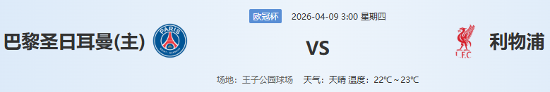 欧冠 巴黎圣日尔曼 VS 利物浦