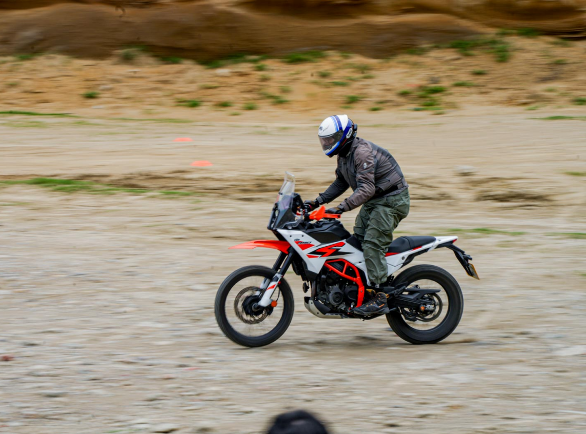 实战体验:ADVENTURE R 的野性与 SMC R 的滑胎灵魂在实际跨上 390 ADVENTURE R 之后,第一印象是那份高耸的霸气,虽然 885mm 的座高数据听起来惊人,但实际跨坐上去,由于避震器的初始设定较为硬朗,下沉量并不如传统日系越野车那么多,180 公分身高也仅能以前脚掌着地,若是 175 公分左右的骑士,建议要练习以单脚着地为主。