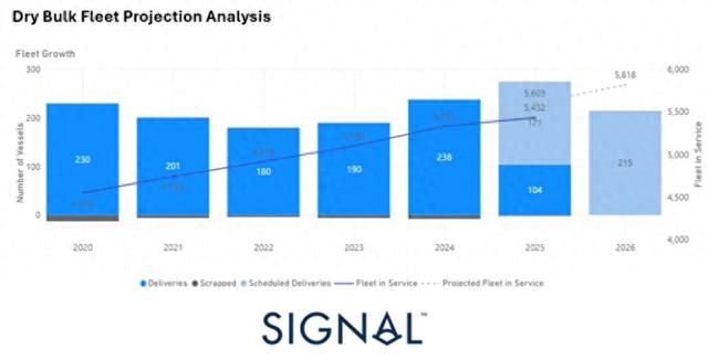 尽管预计到2026年底干散货船队仍将增长近500艘,但这种增长的构成和时间安排正在发生变化。如果拆船活动仍然有限,而需求增长跟不上运力增加的步伐,到2026年底,干散货市场可能出现供应过剩的局面。