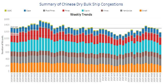 ·灵便型散货船:港口拥堵量较前一周减少了10艘,降至196艘。