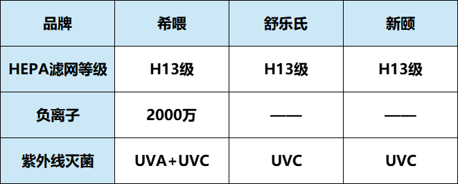 两者都配备 UVC,可以完成基础空气杀菌,但缺少负离子辅助,因此整体深度略显不足。