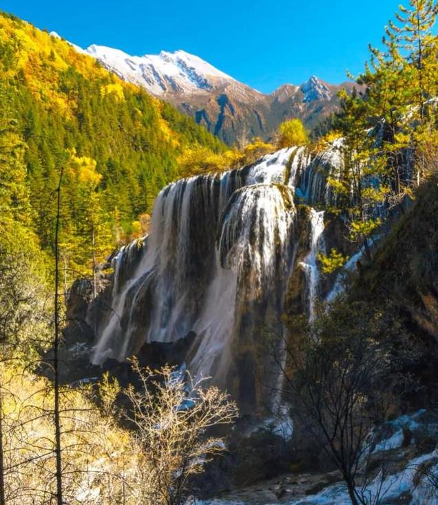 湖水清澈见底,倒映着雪山、森林和蓝天白云,仿佛 一幅天然的画卷 。湖边的熊猫海瀑布,如银河落九天,水花四溅,气势磅礴。在这里,你可以尽情享受大自然的美景,感受大自然的魅力。