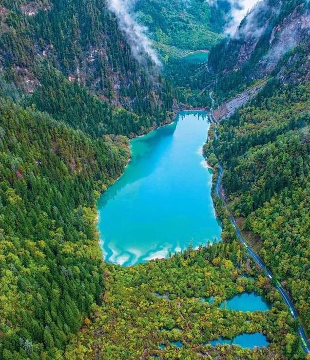 不树正群海是-群小的海子,呈阶梯状,海子与海子相连,中间又有树木隔断,只有俯瞰才能够感受到群海之美。