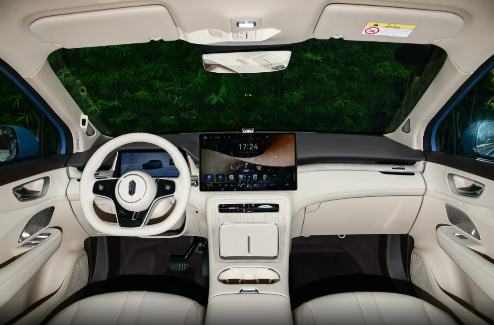 坐进车内,尚界H5的内饰采用了上深下浅的拼色搭配,营造出温馨且时尚的氛围。10.25英寸全液晶仪表盘和15.6英寸中控屏的组合恰到好处,中控系统的操作流畅度值得称道。在它中控台后方那个凸起的星环散射体装置,颇为引人注目,这里集成了HUAWEI SOUND SUPERIOR卓越系列音响系统,能够为用户带来良好的听觉体验。智能化是尚界H5的核心卖点。搭载的华为鸿蒙座舱支持多屏联动交互,如果你使用的是华为手机,上车后可以通过DMS人脸识别自动登录账号,将座位、后视镜调到舒适位置,手机上的导航、音乐也能无缝流转到车机上,体验感真的很优秀。