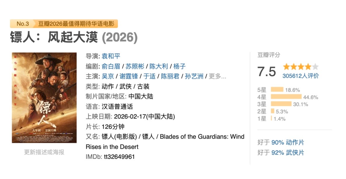 吴京带来的《镖人》,是整个春节档口碑最硬的作品之一。