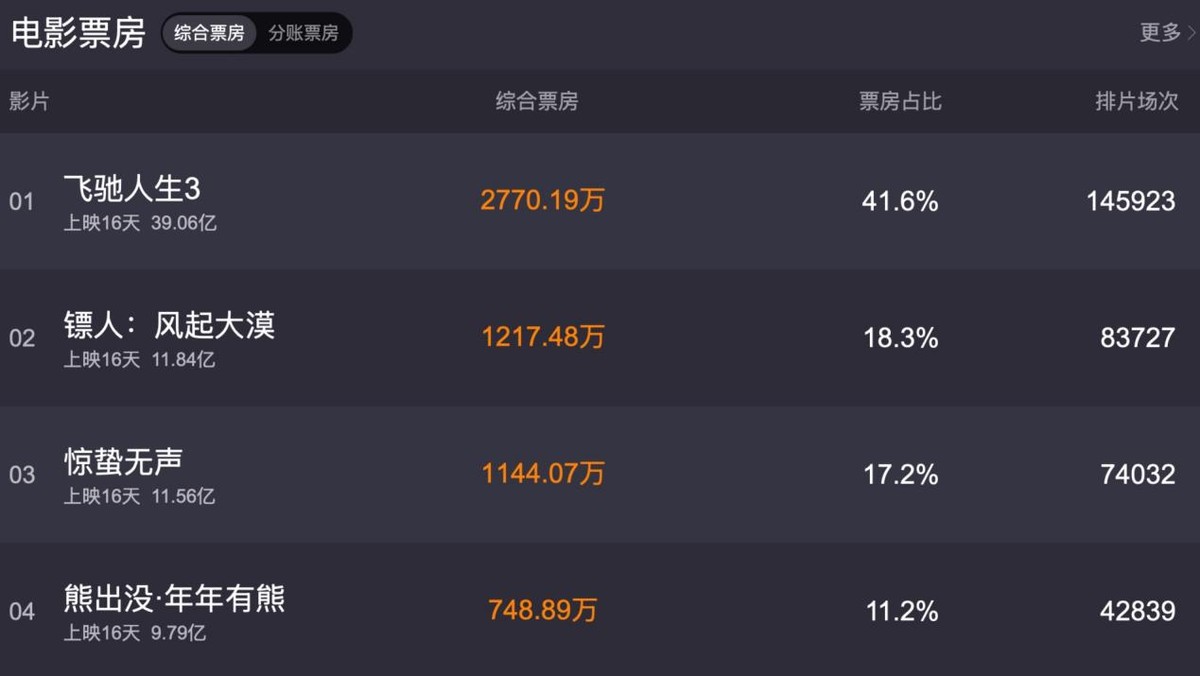 这也就意味着,在未来很长一段时间里,《飞驰人生3》都将牢牢占据院线主要排片,继续稳定输出票房,冲击45亿几乎没有悬念。