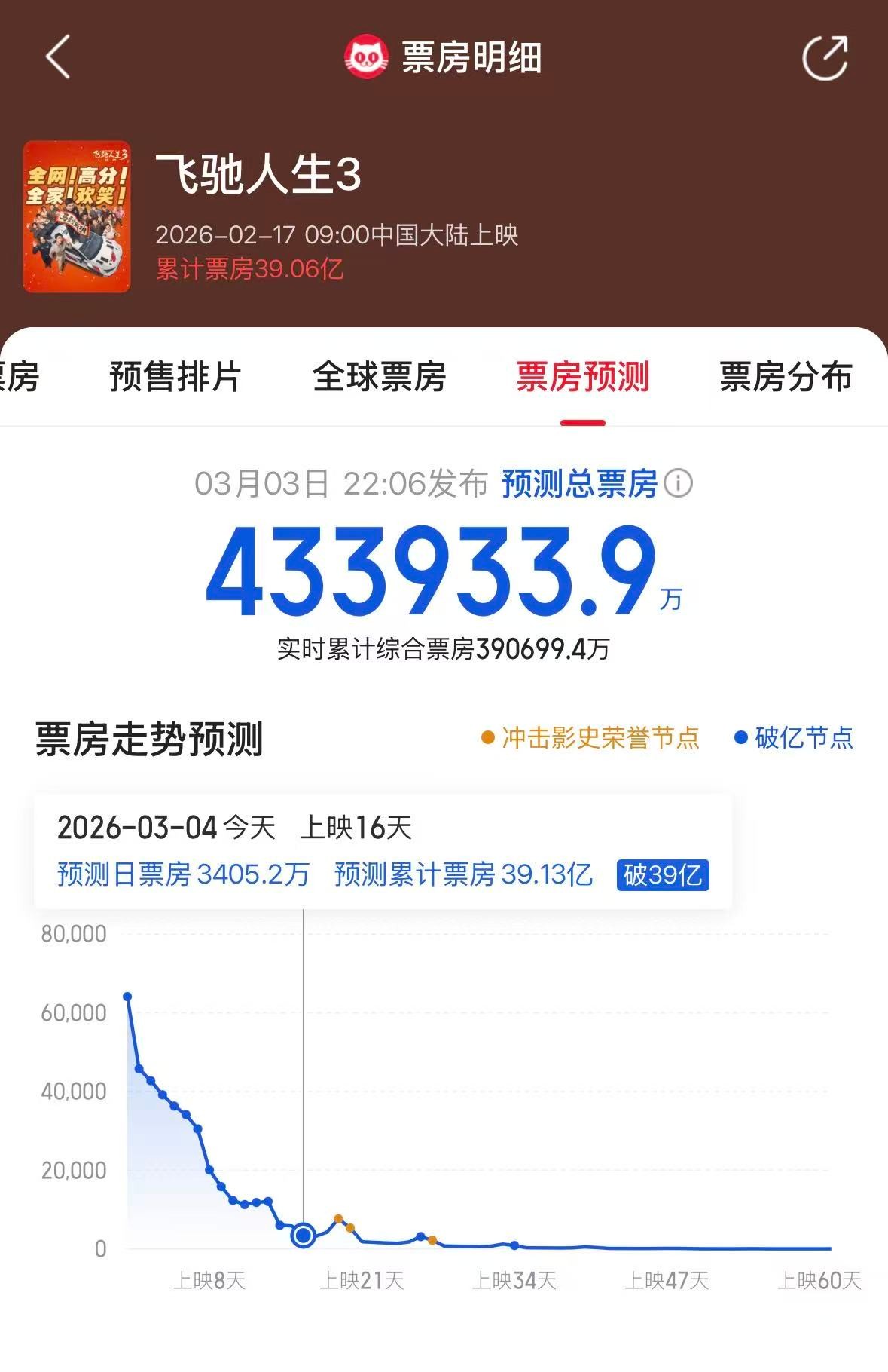 《飞驰人生3》以绝对统治级表现横扫一切对手,上映半个月票房强势突破39亿,专业平台给出的最终预测票房高达43亿,几乎锁定年度华语电影总冠军。