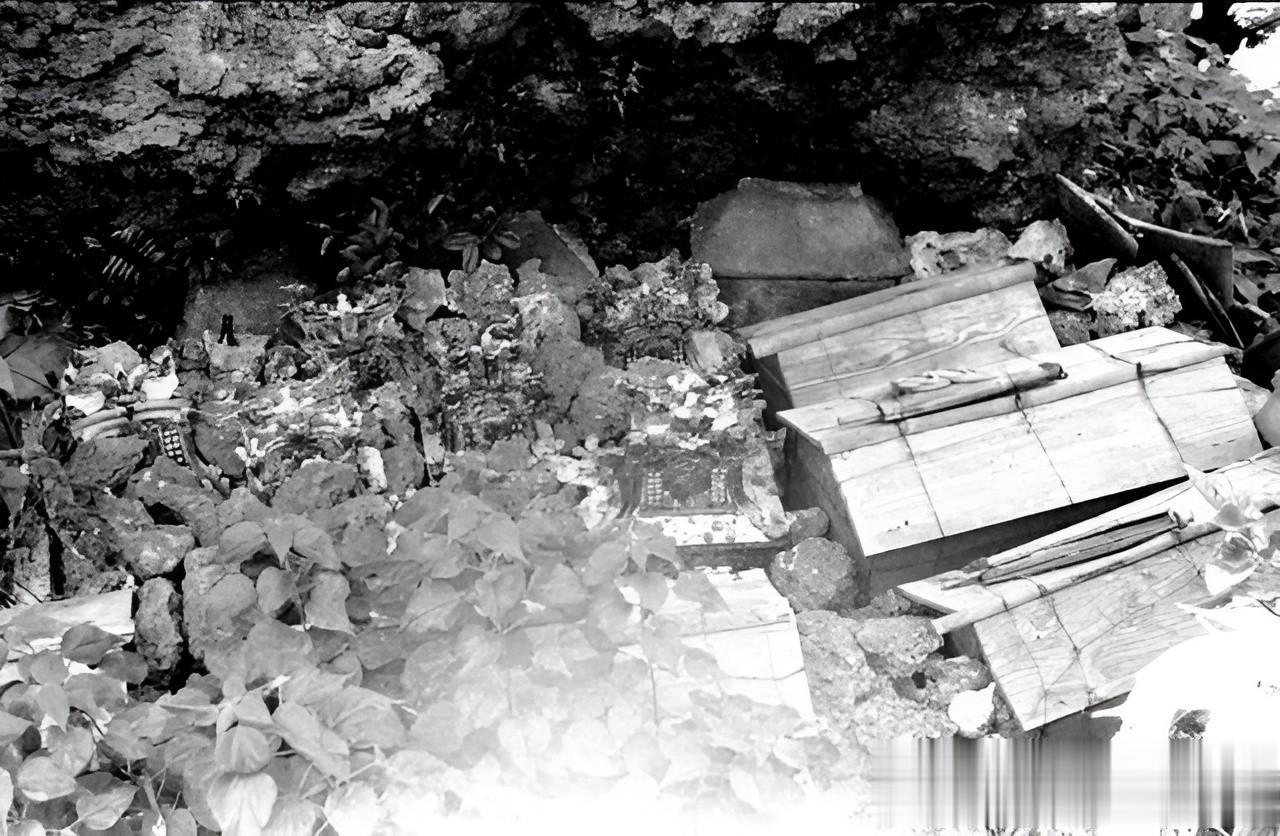 在琉球一个山洞里,居然摆放着很多棺木。陈旧的棺木上面爬满了藤蔓,旁边还有很新的棺木。这里可能是存放家族棺木的山洞。