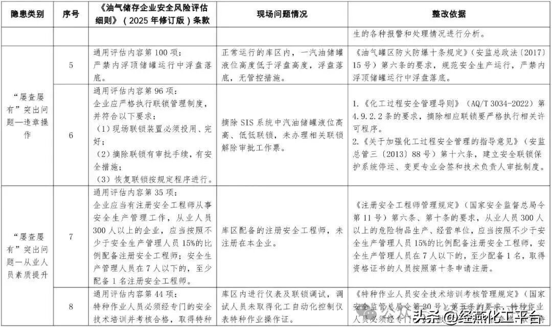 该清单是中小油气储存企业开展安全隐患自查自纠的重要参照,也是地方应急管理部门开展监督检查的关键依据。其目的是聚焦中小油气储存企业安全管理薄弱环节,梳理高频、共性隐患,推动企业闭环整改,提升行业本质安全水平,防范重特大安全事故。