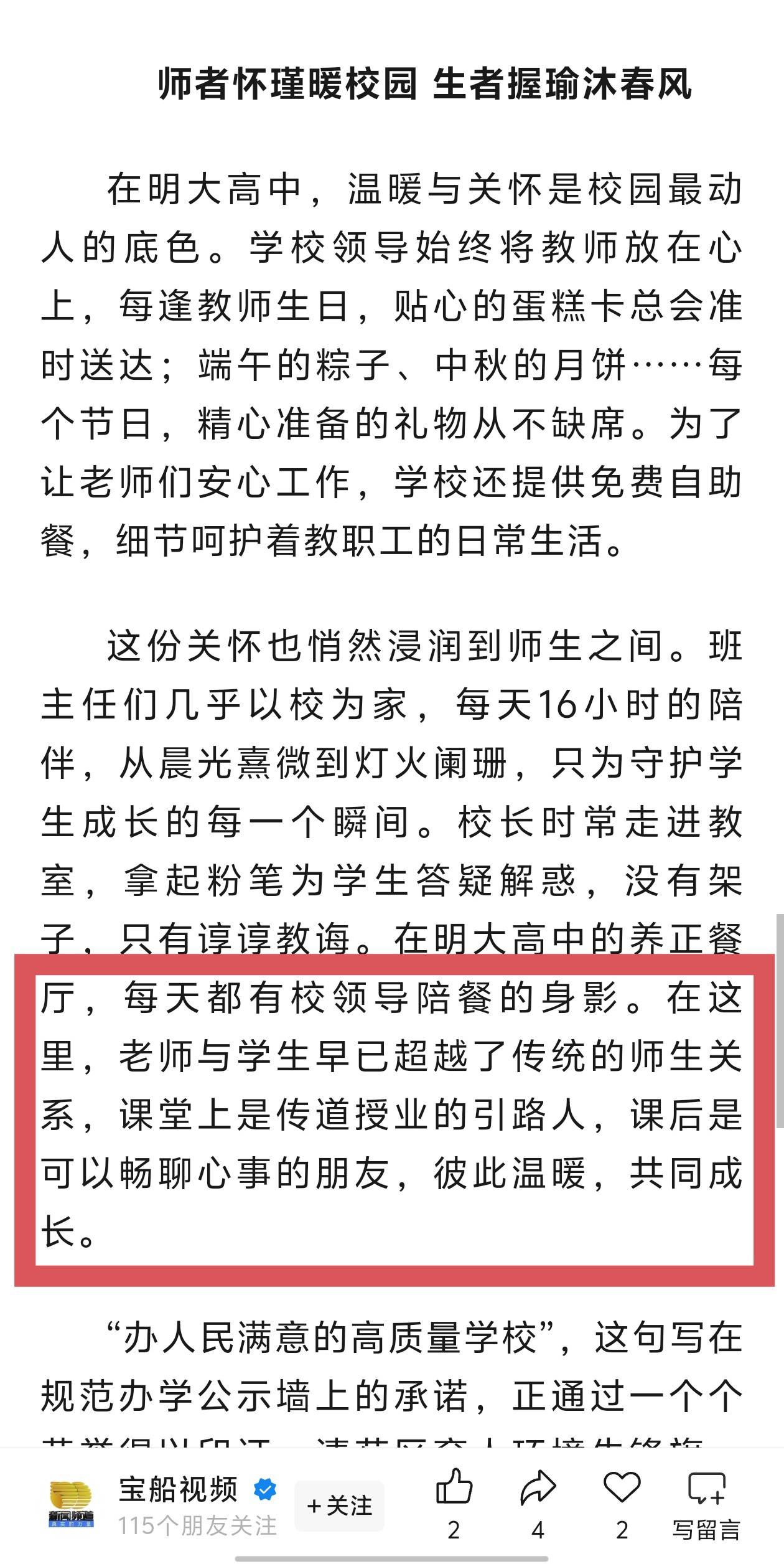 网络搜索明大中学师生关系,一篇2025年8月的文章《保定明大高级中学:用“规范”与“品质”书写育人答卷》中写道:“在这里,老师与学生早已超越了传统的师生关系,课堂上是传道授业的引路人,课后是可以畅聊心事的朋友,彼此温暖,共同成长。”