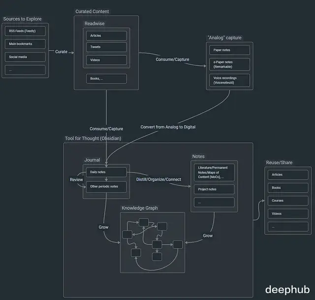 标准PKM(个人知识管理)工作流中,信息的增长充其量是线性的。收藏了200篇文章,190篇原封不动地躺着,记得住的10篇是读过两遍的。知识不会自己相互关联,每次需要用到时,结构都得手动搭建。