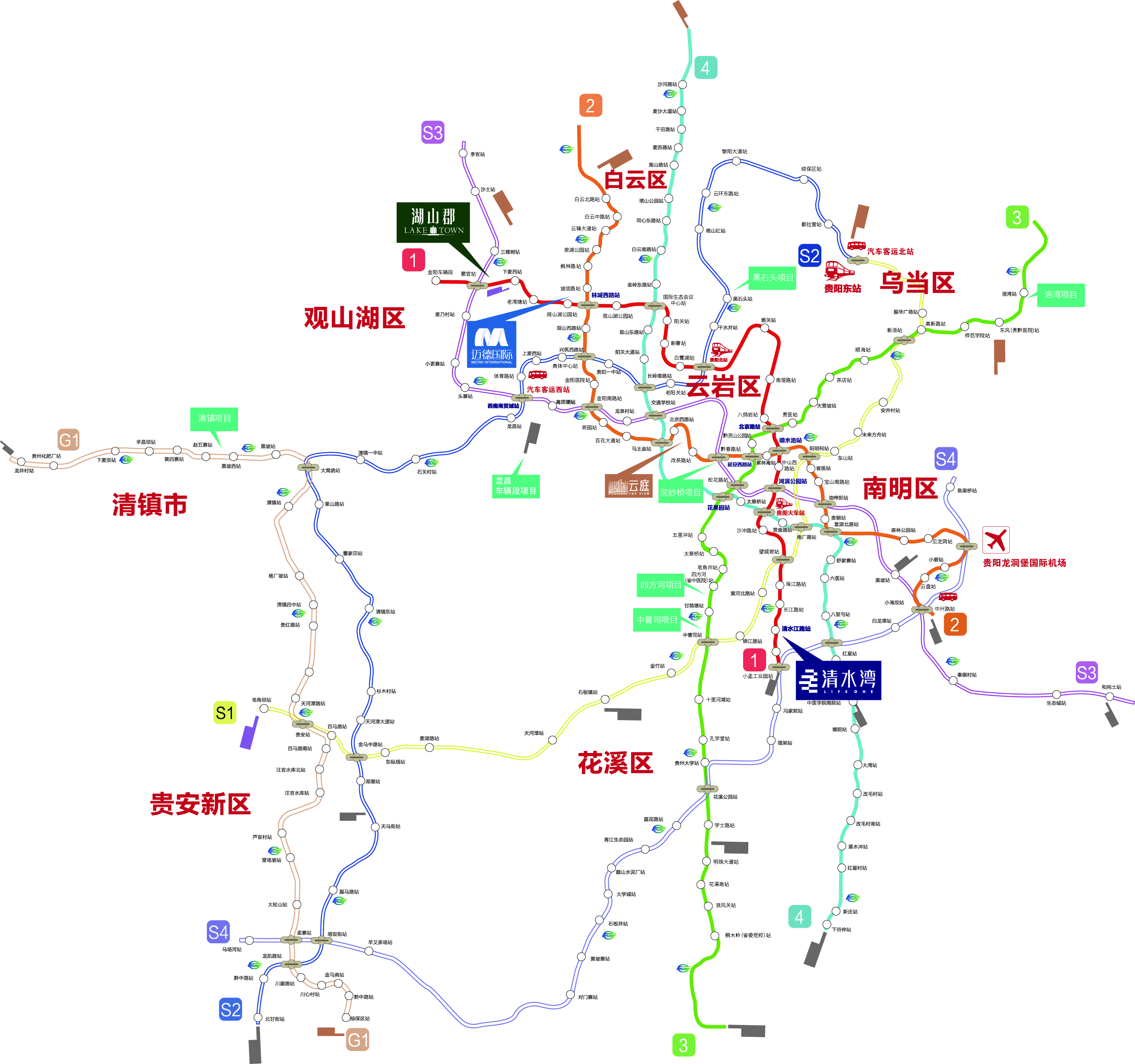 目前最具现实可行性的,就是期待地铁S2线的建成开通,因为S2线的规划,是连通了贵安新区、清镇、观山湖、贵阳北站、白云、高新和贵阳东站的。