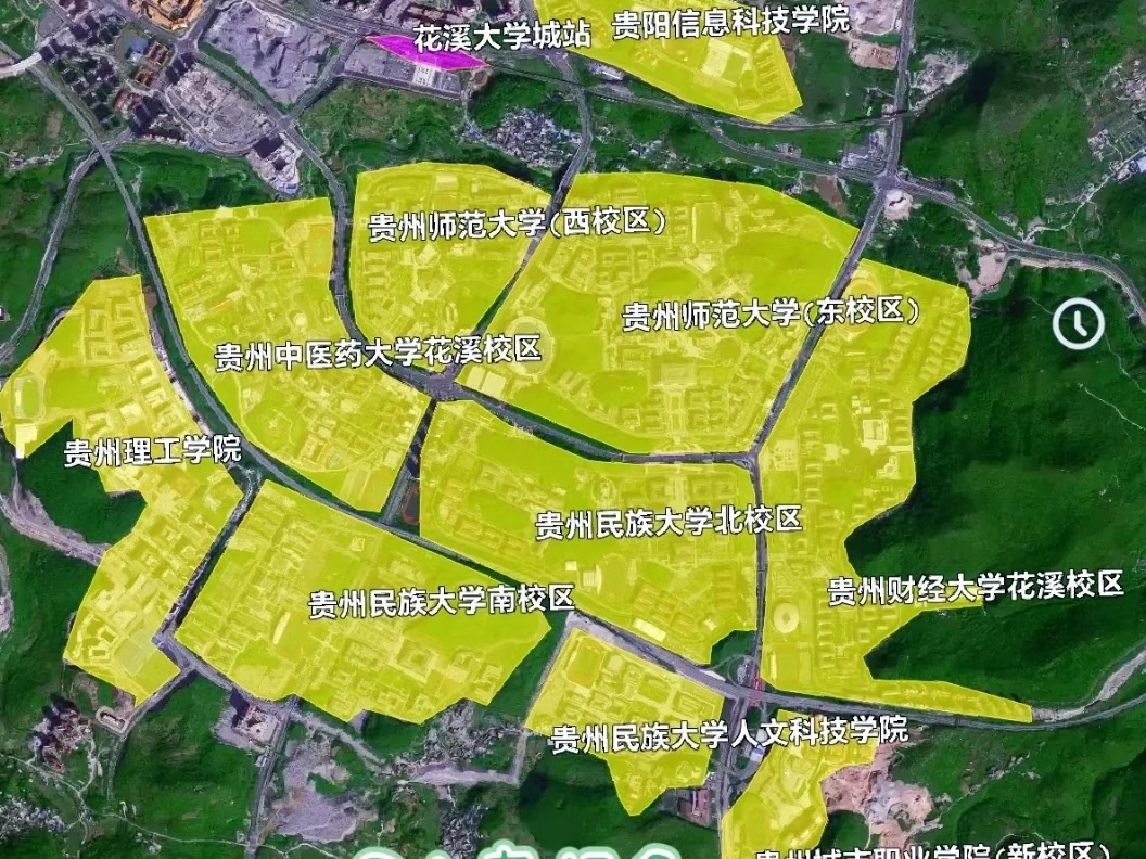 当然,还有一种可能,就是未来的大学城,有可能向东扩展,比如现在的贵州财经大学东校区就在向东侧扩展,大学城的中心板块东移,这样一来,地铁3号线如果直线延伸到5A景区青岩古镇,就算不拐弯,也能经过大学城的中心板块,虽然不能保证每一所大学门口都有地铁站,但也算是核心板块通了地铁。