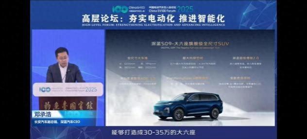 在2025年中国电动汽车百人会论坛上,邓总“嘴瓢”透露深蓝S09预计售价30 - 35万级。