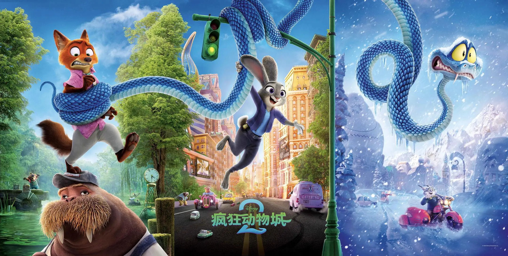 如果说第一部《疯狂动物城》探讨的是个体层面的种族偏见,那么第二部则将矛头指向了更为复杂和沉重的系统性不公、文化抹除与历史修正。影片引入了全新的冲突维度——“哺乳动物 vs. 爬行动物”,并通过新角色蛇盖瑞的悲剧英雄叙事,尖锐地批判了由既得利益集团(如猞猁家族)通过操纵基础设施(“气候墙”)来制造族群对立、掩盖历史真相的阴谋。