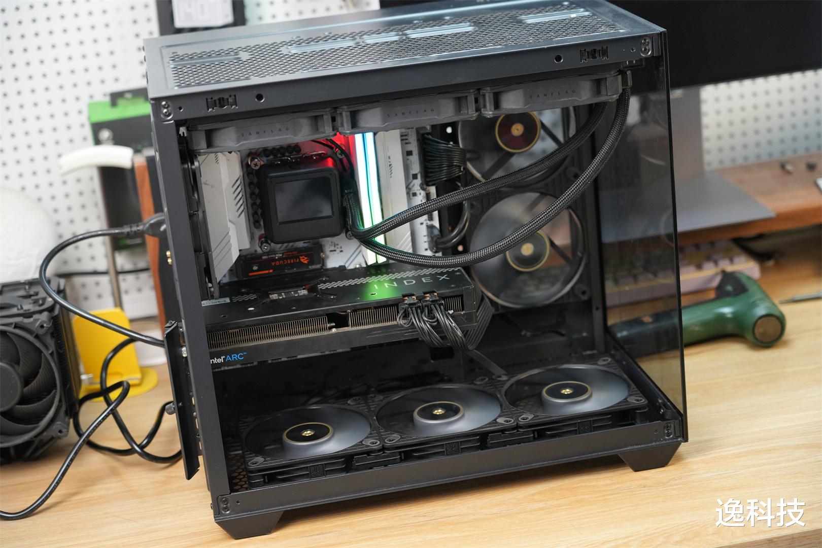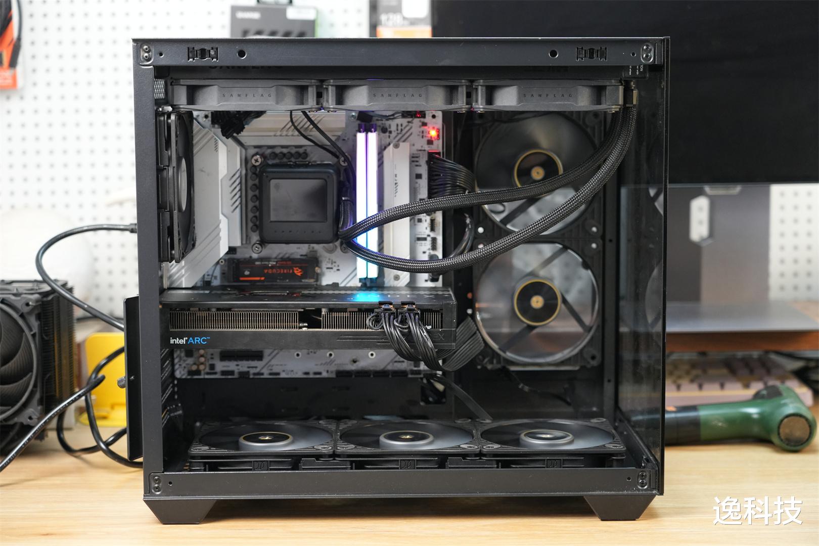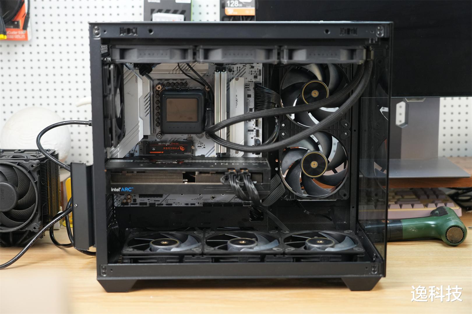机箱用的是海王星EVO海景房机箱,这款机箱不仅价格更加亲民,在体积方面也相对紧凑。对于大部分主流玩家来说,桌面空间往往有限,太大的机箱不仅占用过多空间,还会让整体布局显得杂乱无章。而紧凑的体积,能够轻松融入各种桌面环境。