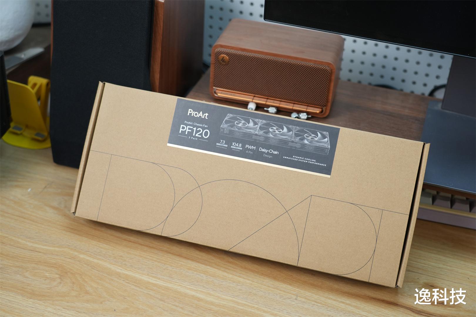 外观颜值这款ProArt创梦PF120风扇采用牛皮纸包装盒包装,盒上有PROART标识和产品贴纸。风扇附件有12颗螺丝、3条风扇线、1个控制器。
