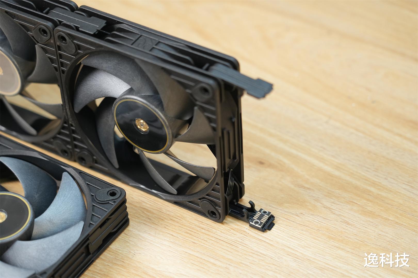 风扇叶片用的是液晶聚合物复合材料(LCP),它强度高、热膨胀低,还有天然阻尼特性,能保证风扇高性能稳定输出和运行精准。风扇正面中间是CNC精铣的黄铜轴承壳,里面有钢制电机芯和LCP框架,提升了制造精度,也保障了长期运行的可靠性。