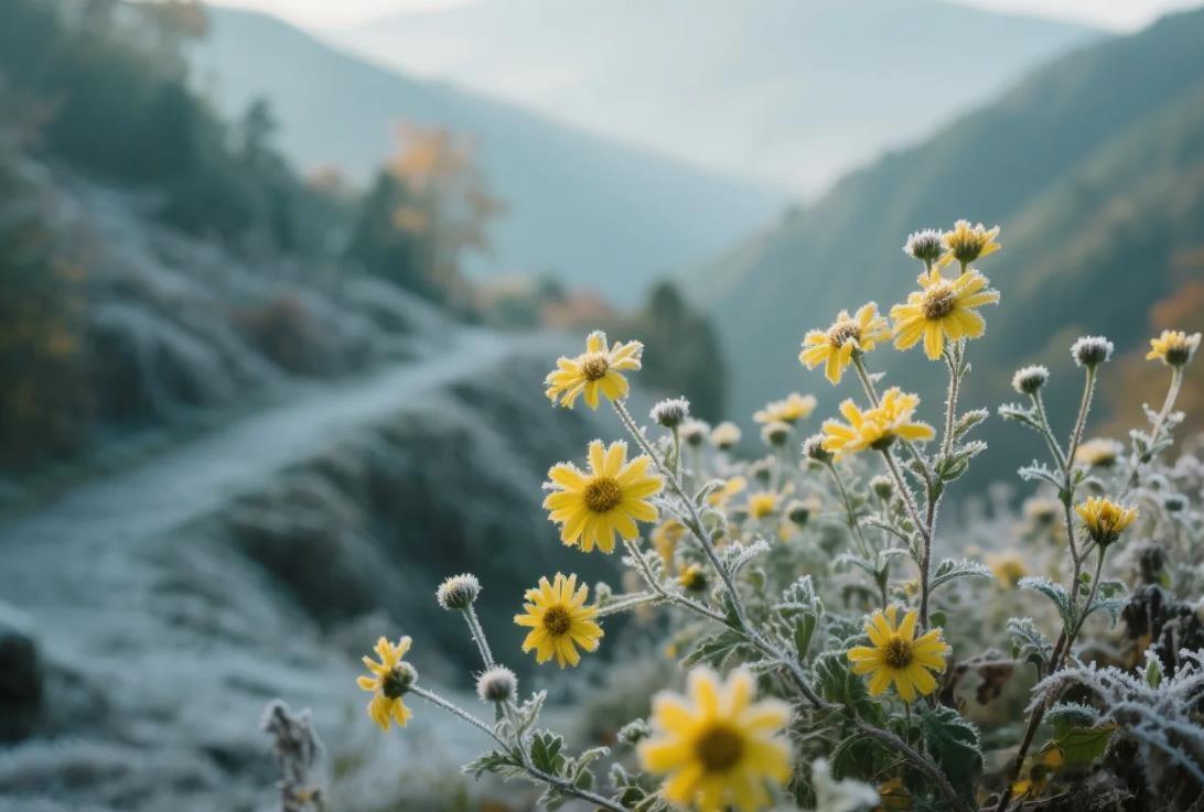 看到这小雪节气,开在风里的野菊花,他怎么不多感,自己的命运,象黄菊野草。这么冷的天,也在努力开放。
