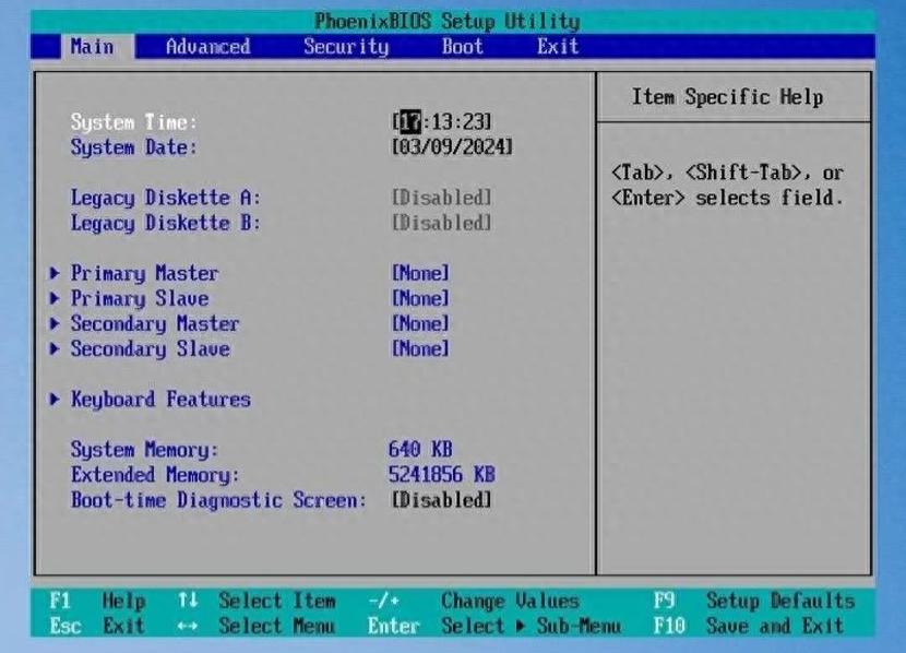 F1 Help ↑↓ Select Item -/+ Change Ualues F9 Setup Defaults