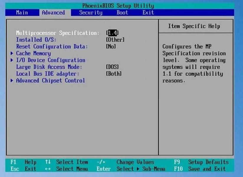 Configures the MP Specification revision level. Some operating
