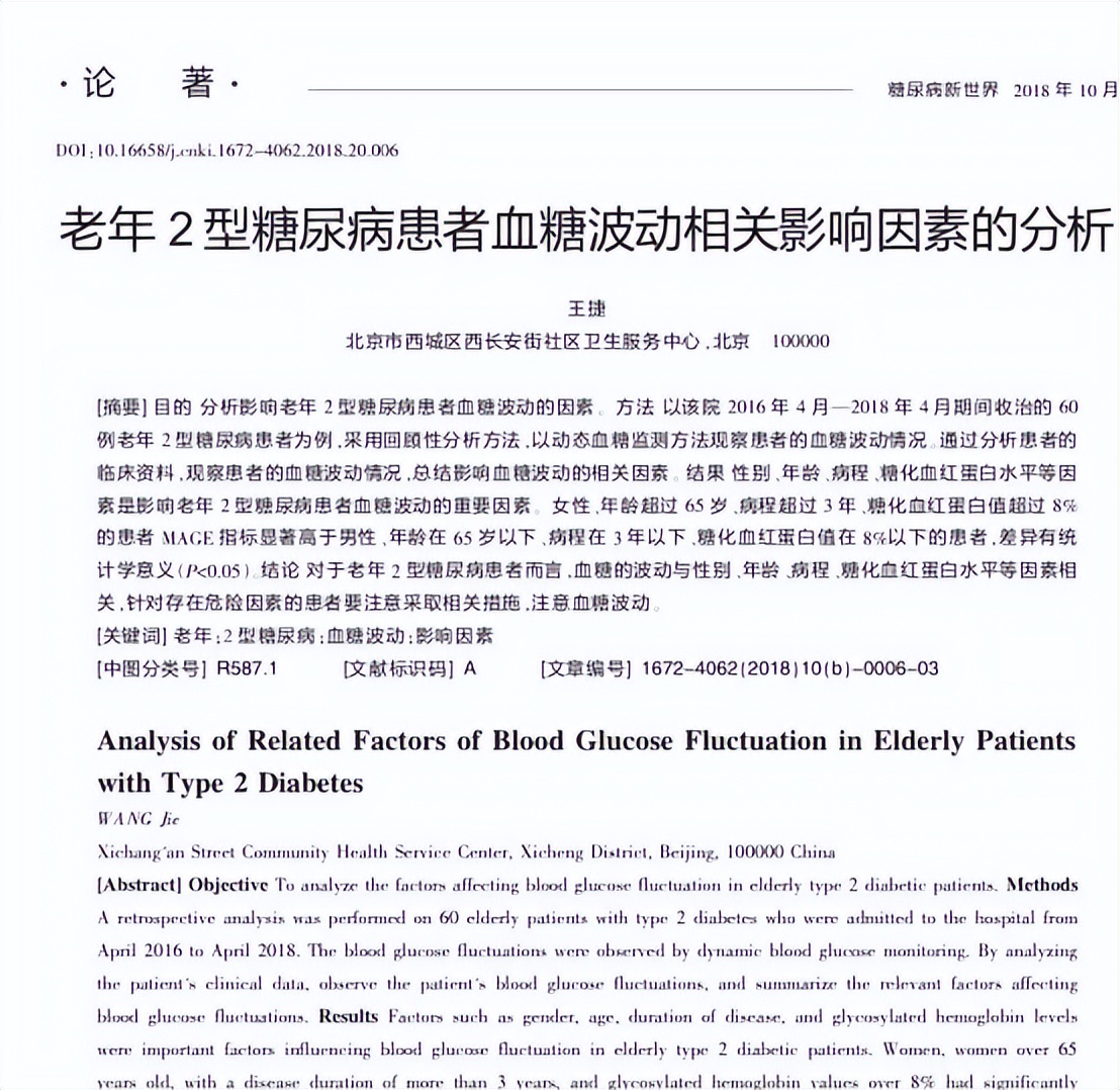 参考资料[1]王捷.老年2型糖尿病患者血糖波动相关影响因素的分析[J].糖尿病新世界,2018,21(20):6-8.