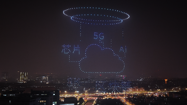 图说:500架无人机幻化成“市北高新”等标识,生动勾勒市北高新前沿领域的布局。