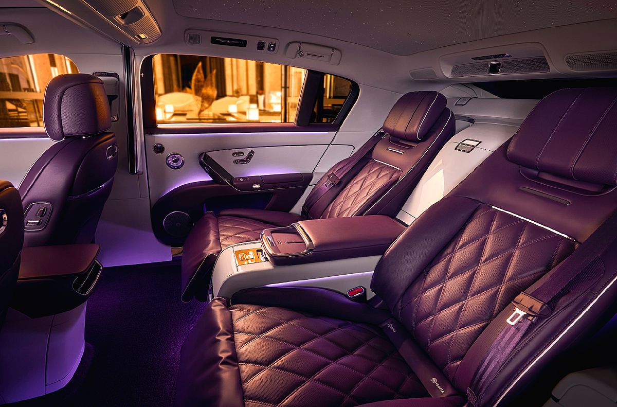 后排双零重力座椅采用 Nappa 真皮材质,支持 16 点按摩、8 档座椅通风 / 加热,以及电动调节座椅角度。