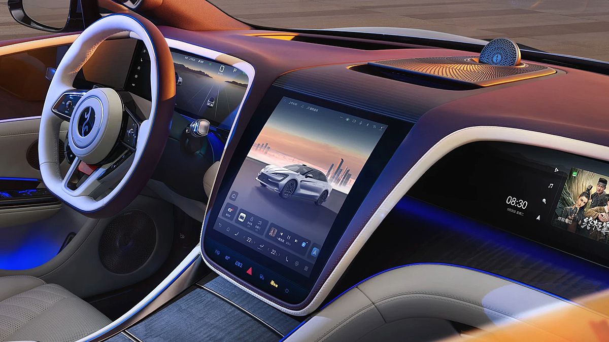 智能交互方面,仰望U7接入 DeepSeek 大模型的语音助手,支持 “复合指令识别”;75 英寸 AR-HUD 可投射导航路线、车速、会议文档。
