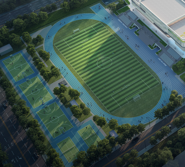 除了教学楼、办公区与服务用房,地下空间还被赋予了双重功能:一部分用于教学辅助,另一部分则作为社会公共停车场,兼顾校园与社区的实际需求。这样的设计不仅提升了空间利用率,也增强了学校与周边的连接。