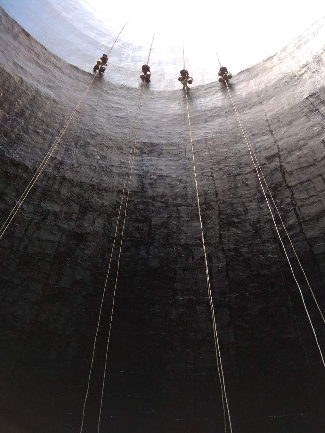 混凝土烟囱:清除浮浆、疏松层、油污、灰尘,修补孔洞裂缝
