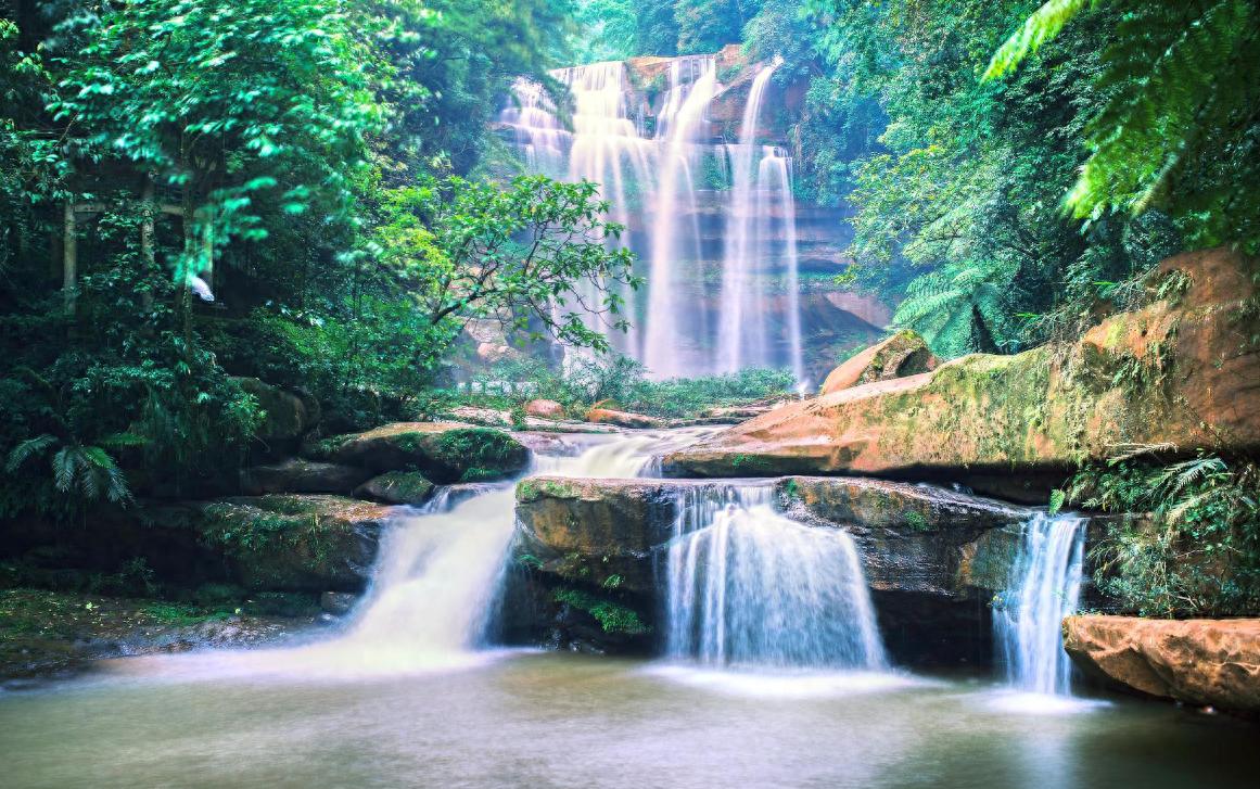 第二联:“云海川流浮碧空,石泉穿壑漱青松。”