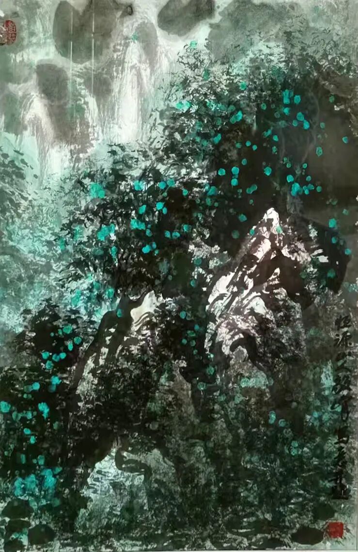 刘毅峰“散锋点彩山水国画”