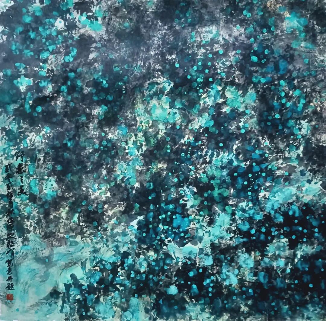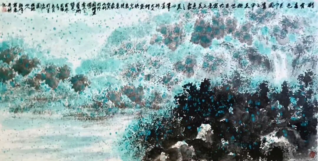 “笔参造化,学究天人。” 欣赏刘毅峰先生的作品,尤其是体现其独具艺术特色的“散锋点彩山水国画”中,能感受到深邃的传统意蕴与生动的现代表现力。他的“散锋点彩技法”创造性地将中国画艺术的“写意精神”与西方色彩美学理论相融合,在创造性地发扬传统“笔墨意趣”的同时,大胆引入现代视觉艺术语言。其“散锋点彩山水国画”作品既有体现了中国画气韵生动的“意象美”,又有体现融入了西方绘画的空间构成与色彩张力,形成了独具特色的“中西融合”以及很个性化表达的艺术风格,而又不失“中国艺术精神”!他以“散锋笔法”破传统“皴法”之拘,用“点彩墨色”解传统赋彩之固,在看似随意的笔墨点彩间构建出山水的韵律与空间的意象。其画既得宋元山水的幽远意境,又有明清“文人写意画”的艺术精神,更赋予其现代视觉艺术的层次与节奏的美学趣味,在虚实、疏密、浓淡、明暗、动静以及“点线面”等对比关系之间,形成了一种既扎根传统又具有现代气息的独特的山水画艺术语言。其山水画笔墨之间似乎蕴含着哲学思考与美学理想,追求“理趣”和意境深远的“内美”,并有注重于“画气不画形”的大写意艺术审美倾向,通过笔墨和点彩的艺术语言传达出对于传统文化与现代艺术的深度理解。