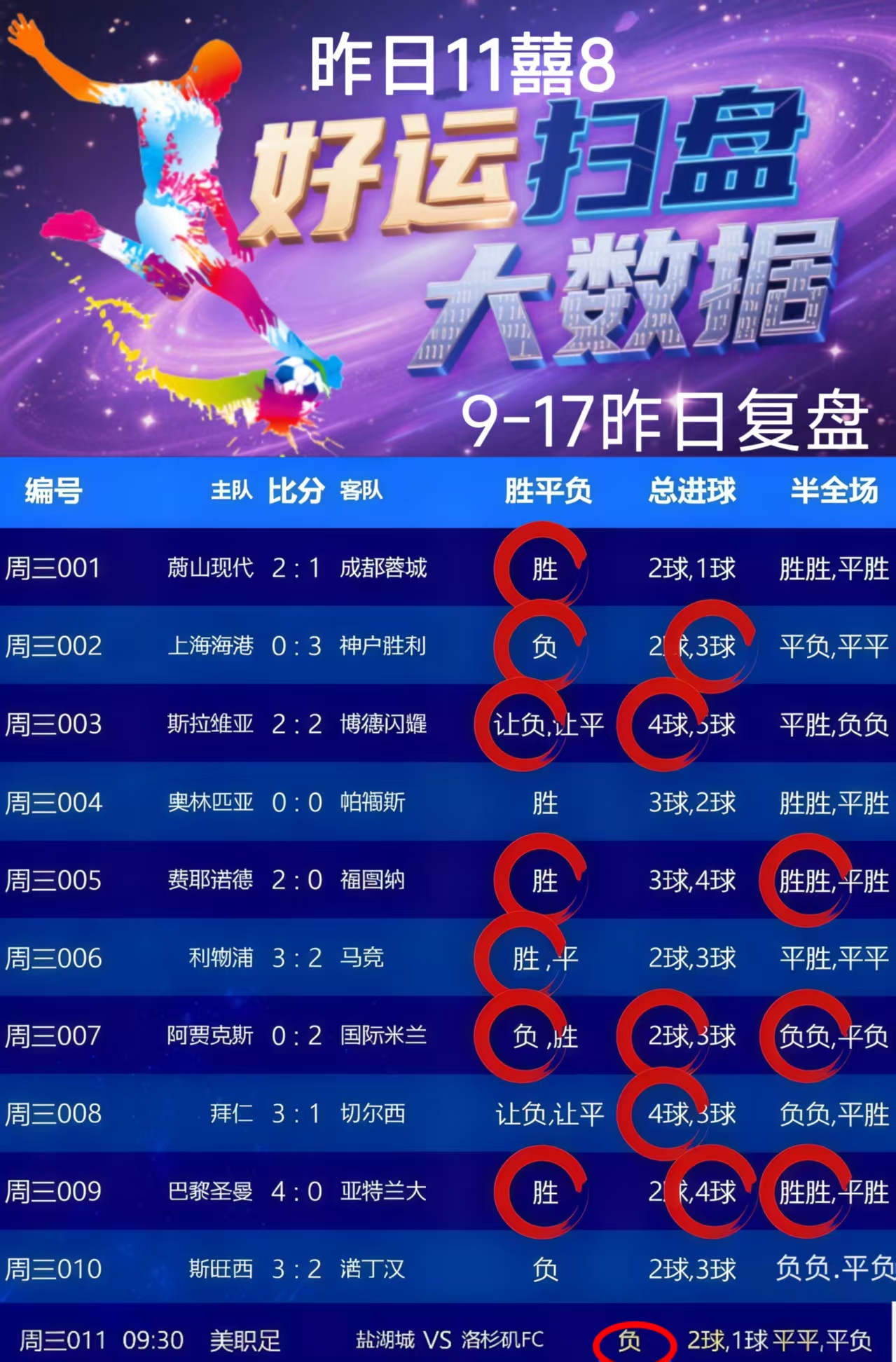 昨日足球11囍8,命中率73%!今日6场足球比赛,祝我们好运!篮球今日2场赛事!