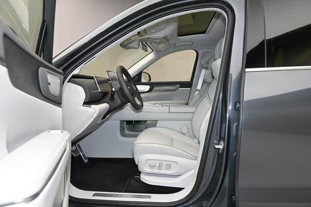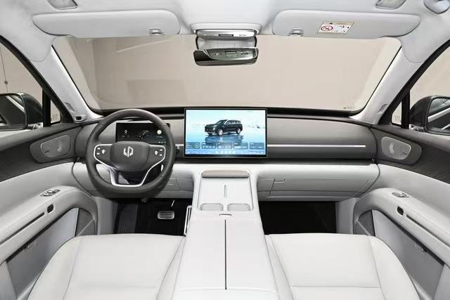 打开车门,内饰给人极简风格的感觉,中控台采用分层式设计,横向线条拉伸了视觉宽度,取消了实体按键,所有功能都集成在屏幕上,操作起来很简洁。材质方面,座椅是Nappa真皮和麂皮混搭,中控台覆盖了软质搪塑和哑光铝饰板,手感很好,门板扶手区域还有记忆棉填充,平时靠在上面很舒服,缝线间距很均匀,能看出做工很扎实。配置上,零跑 D19采用五屏三维空间立体交互系统,包括60 英寸高亮全天候 AR‑HUD 抬头显示、主驾前方 10.25 英寸仪表屏、中控 17.3 英寸触控屏、后排 6 英寸多功能控制屏、21.4 英寸 3K 电动娱乐屏。不同于部分车型单纯堆砌屏幕,D19 布局合理实用:AR‑HUD 与主驾仪表主要显示车速、导航信息,实现视线不低头;中控屏负责空调、影音操作,响应流畅,由双高通骁龙 8797 至尊版舱驾融合芯片提供算力;后排 21.4 英寸大屏可播放动画,搭配 6 英寸控制屏,乘客能独立调节功能,无需前排协助,更省心。
