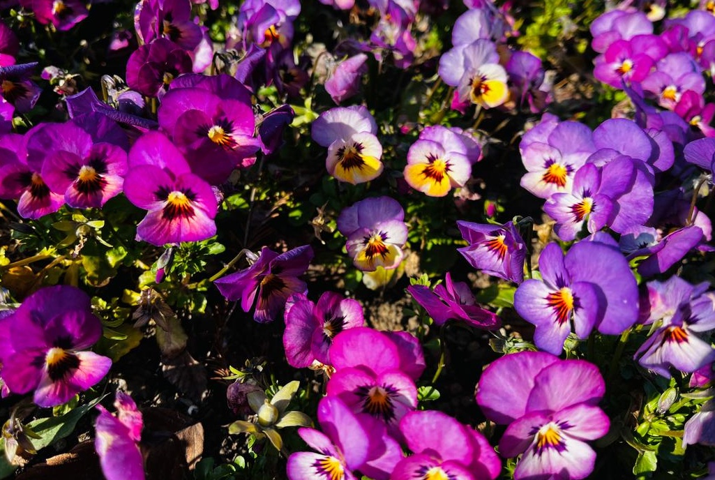 在一些老旧的小区里,居民们会在小区的公共绿地里种花。有些居民种了三色堇,但是在色彩搭配上不是很讲究,导致整个绿地看起来有点杂乱。如果按照一定的花色搭配原则,比如把相近色的三色堇种在一起,然后和其他颜色的花卉间隔种植,整个绿地就会看起来和谐很多。