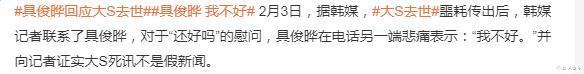 后来,具俊晔向韩国媒体的记者证实大S不在人世间的消息。