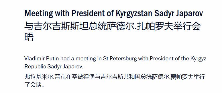 结果,三天后,俄罗斯总统普京在圣彼得堡见了吉尔吉斯斯坦总统扎帕罗夫。