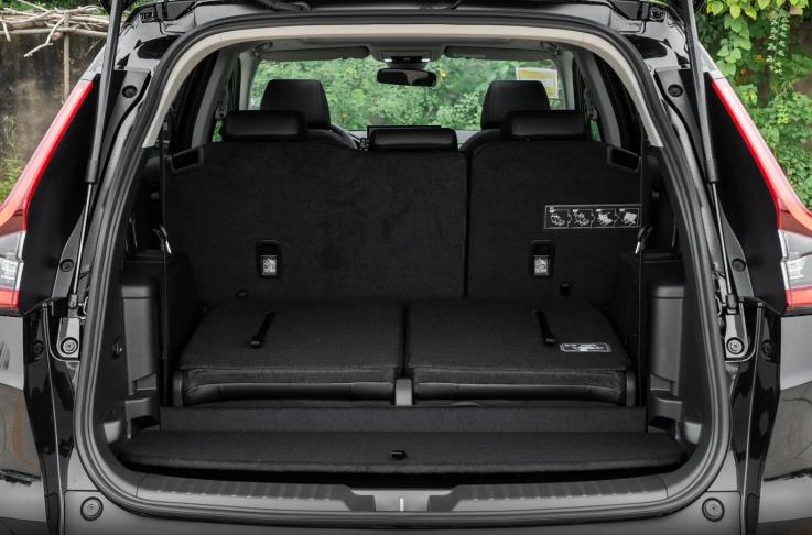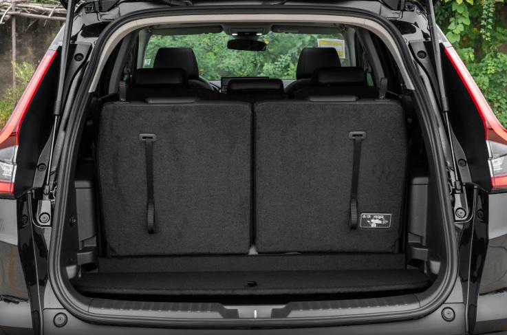 取消七座是为了让后备箱变得更大,但2026款本田CR-V通过巧妙的结构设计,使座舱在七座状态下依然保留了可观的后备箱容积。在五座模式下,其进深和高度都非常可观,轻松容纳2个28寸行李箱加上数个登山包都毫无压力。当启用七座模式时,虽然车内垂直高度有所压缩,但放置几个登机箱或超市采购的战利品依然绰绰有余。
