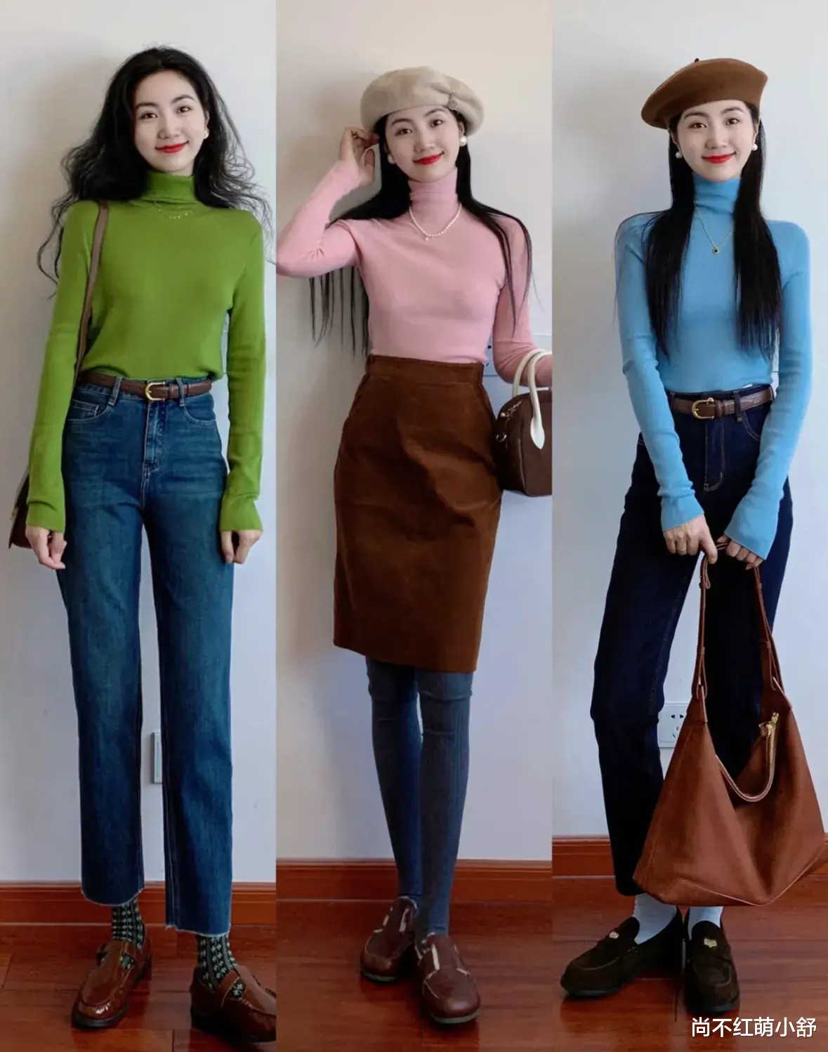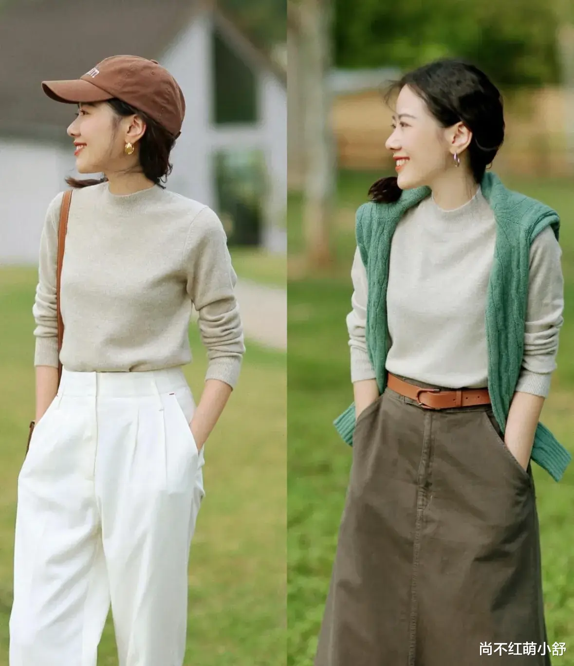 2)看版型:脸大/脖子短?选半高领+微宽松领口(领口比脖子粗1-2cm),视觉上拉长颈部线条;小个子/纸片人直接锁修身款,搭配披肩露出1cm领口,精致度拉满。