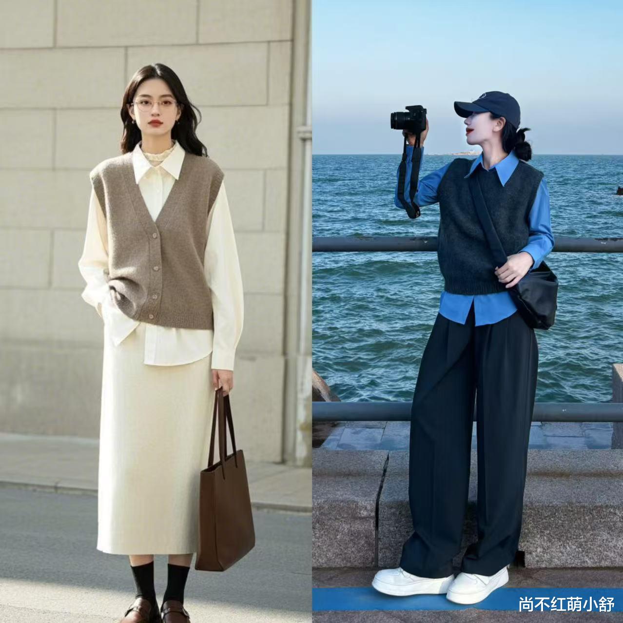 第二件:复古针织马甲——叠穿!一秒穿出层次感