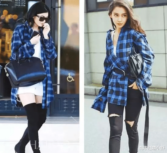 look3、蓝色格纹衬衫+黑色紧身裤:衬衫敞开穿,配靴子、老爹鞋,青春活力满满,慵懒又随性,周末遛弯被偷拍都不知道哦~