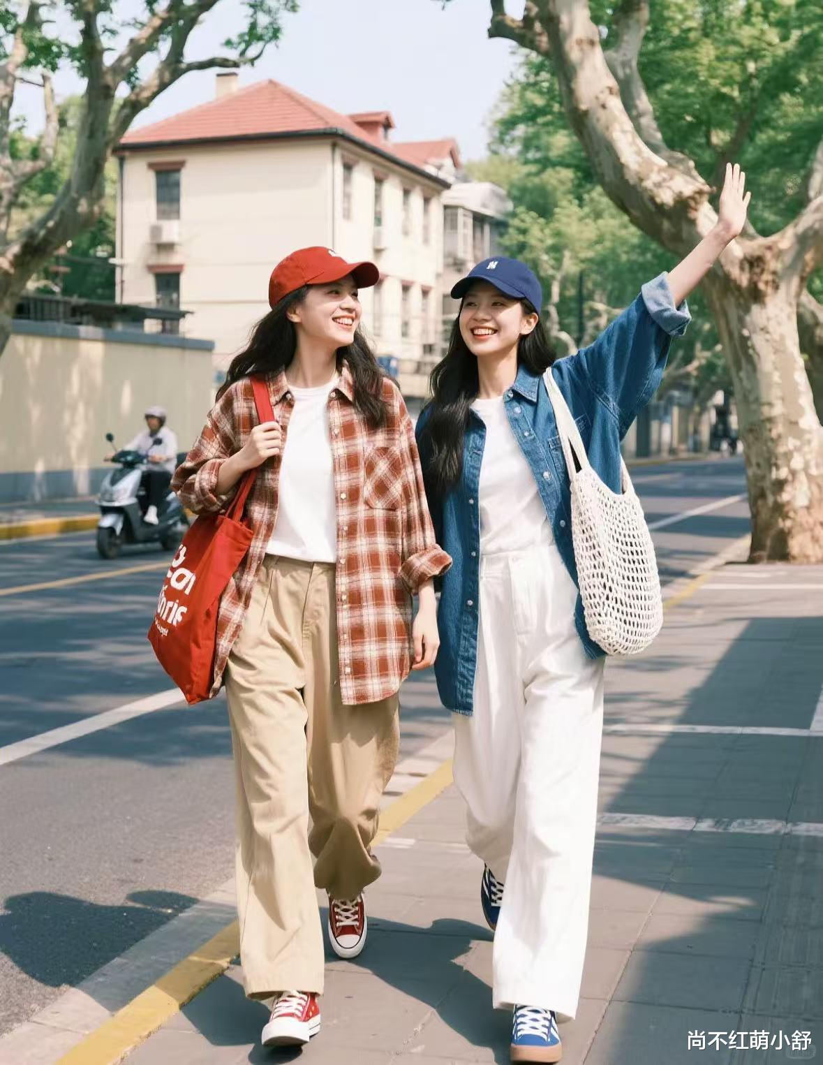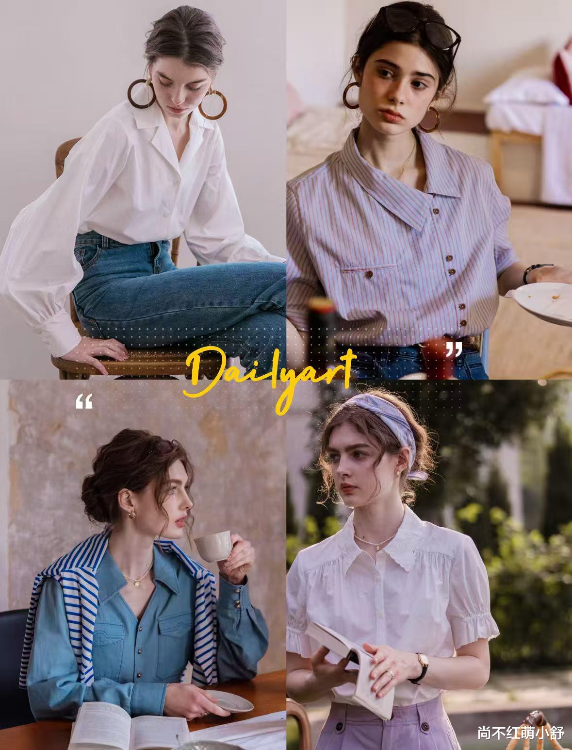 ②颜色的选择:别只盯白衬衫!试试莫兰迪粉(显白不幼稚)、苔藓绿(复古文艺)或条纹款(细条纹显瘦,粗条纹复古)。